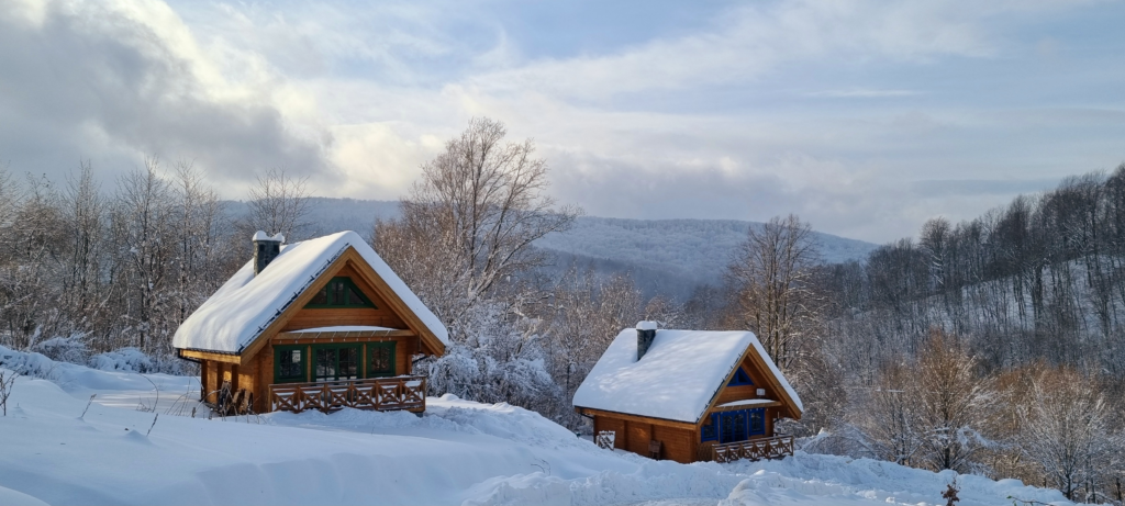 Nasze domki położone są w wyjątkowej okolicy, stworzonej z myślą o zimowym wypoczynku. Tuż przed obiektem znajduje się górka na sanki, a w zaledwie 10 minut jazdy samochodem czekają trzy stoki narciarskie z trasami o różnym stopniu trudności. Okolica zachęca także do spacerów i pieszych wędrówek po malowniczych szlakach. Dodatkową atrakcją są pobliskie stadniny koni, oferujące klimatyczne kuligi w zaprzęgu konnym. To miejsce, w którym zimowy relaks łączy się z aktywnym wypoczynkiem i niezapomnianymi wrażeniami.
