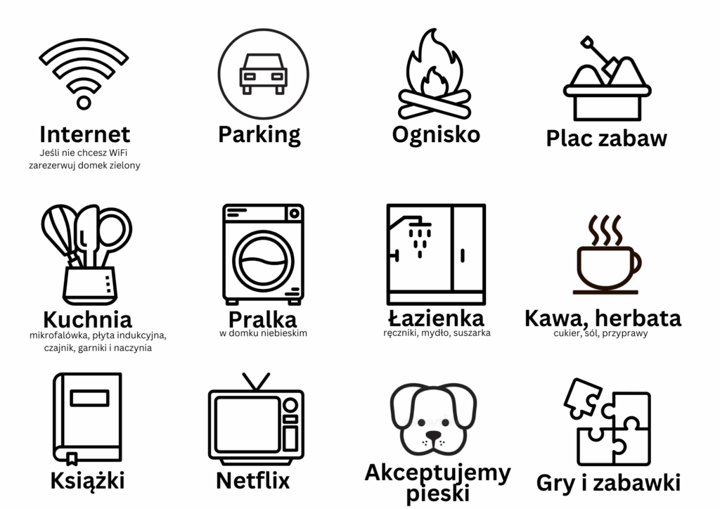 Każdy domek urządzony jest tak, żeby zapewnić Wam maksymalny komfort.